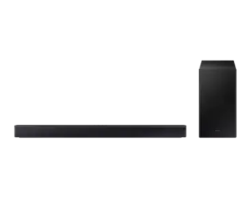 The **Samsung HW-C450 2.1ch Soundbar** with **DTS Virtual:X** is a **powerful and sleek** audio solution designed to enhance your entertainment experience. Featuring a **wireless subwoofer**, it delivers **deep, rich bass**, while **DTS Virtual:X technology** creates an immersive **3D surround sound effect**. The **Bass Boost Mode** allows you to enhance low frequencies for a more dynamic audio experience. With **Adaptive Sound Lite**, the soundbar automatically optimizes audio based on the content you’re watching, ensuring clear dialogue and balanced sound. **Game Mode** provides enhanced directional sound for gamers. **Bluetooth and HDMI ARC connectivity** offer easy setup and seamless pairing with TVs and other devices. Its **modern, minimalist design** makes it a stylish addition to any home entertainment setup.