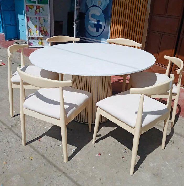 Round table with chairs. The colours can be customized