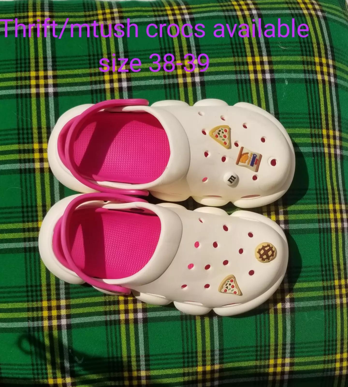Thrift crocs available in size 38-39 as good as new. please note the charms may change.