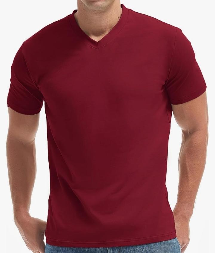 High-quality material: Our Maroon V-Neck T-shirts fabric is soft, comfortable, moderately elastic Comfortable fit: The design of the t-shirt is form-fitting, which can show off your body shape well and feels very comfortable to wear. It is suitable for various occasions. Essential T Shirts for Men . Performance Fabric. Wrinkle Resistant Breathable.soft and comfortable. Durability: The material is easy to care for and clean, and the t-shirt does not deform after multiple washes, so it is very durable